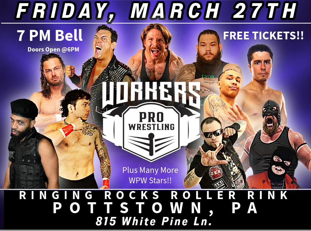 We want you to have a chance to see the best new wrestling company in Pottstown. Workers pro Wrestling is bringing hard hitting and high flying Pro Wrestling excitemet.